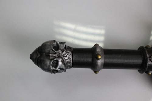 這這把巨大的裝備有1.3米長(zhǎng),重量卻只有600克。Kirby負(fù)責(zé)設(shè)計(jì)巨劍的劍身和各部分的連接結(jié)構(gòu)(這把劍被分成了多個(gè)部分),而他的朋友 Elliot Viles則負(fù)責(zé)刀柄及附近的頭骨裝飾。在設(shè)計(jì)過程中,Kirby主要使用Solidworks軟件,而Elliot則習(xí)慣于使用ZBrush。 雖然兩種軟件之間在格式上會(huì)有些問題,但Kirby使用Mesh Mixer軟件將兩種設(shè)計(jì)結(jié)合了起來。而且結(jié)果表明,并沒有影響到最終的3D打印質(zhì)量。
