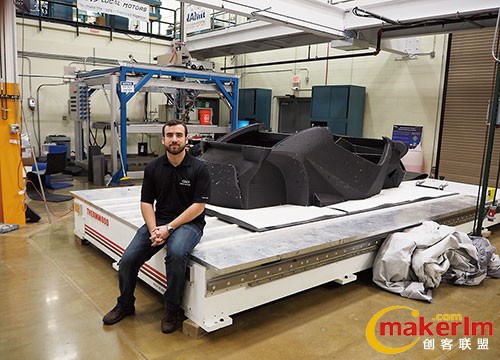 Strati的研發基地位于ORNL內的“制造示范基地(ManufacturingDemonstrationFacility,MDF)”(田納西州諾克斯維爾,圖1)。該3D打印車“工廠”設有大型3D打印機、用于打磨造型品表面的5軸切削加工機,以及組裝場地(圖2)。現場沒有輸送帶及手推車之類的任何搬運裝置。從3D打印機上卸下來,再裝到5軸加工機上時,“用叉車抬一下就行了”。