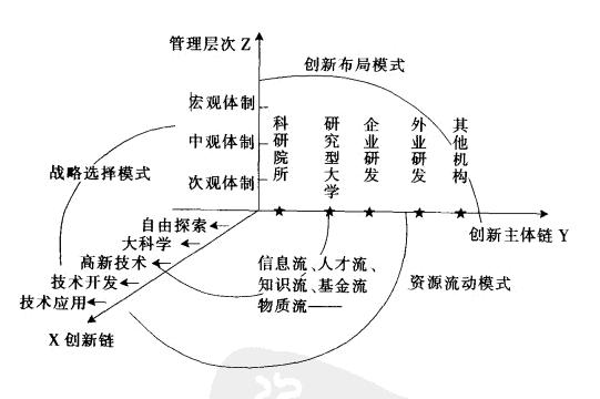 4、管理z與創(chuàng)新鏈條x間,管理對各類創(chuàng)新類型的部署、整合的形式稱為創(chuàng)新鏈的戰(zhàn)略選擇模式;