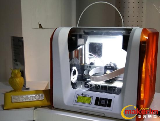 這款打印機從外觀上看,類似于稍高些的微波爐,重量為12公斤。配置上,噴頭直徑介乎0.1~0.4mm之間,用戶可按實際需要自行調(diào)節(jié)。其最大打印尺寸為15×15×15cm。