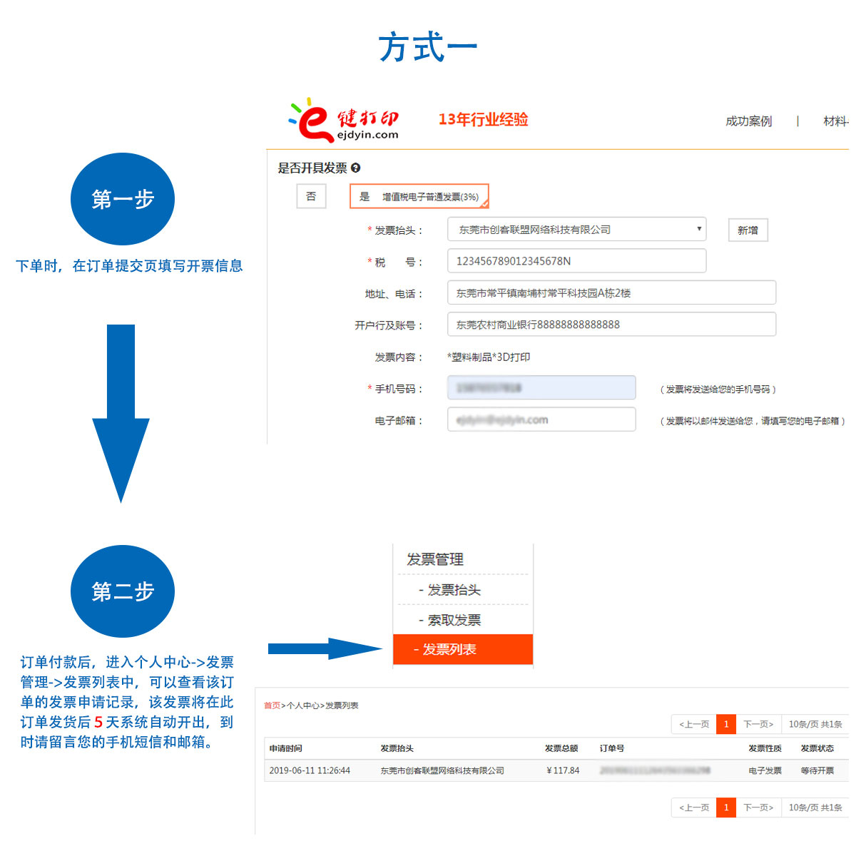 6)申請方法:a.下單時填寫開票信息即可,發票將在貨物發出5天后,發送到您的手機或郵箱;